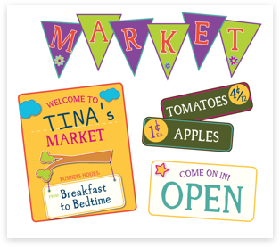 A quick google search will send plenty of ideas your way when it comes to make-belief play. And that’s what’s so magical about pretend play; you gather a few things around the house, download some awesome printables just like these, add a toy cash register and, VOILÀ! You now have a public market (with the cutest little merchant), right in the middle of your living room. Time to grab your basket and go shopping, mommy. “How much for these tomatoes sweetie?” “It will be a big total of 2 kisses.”