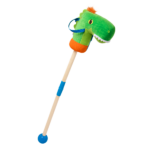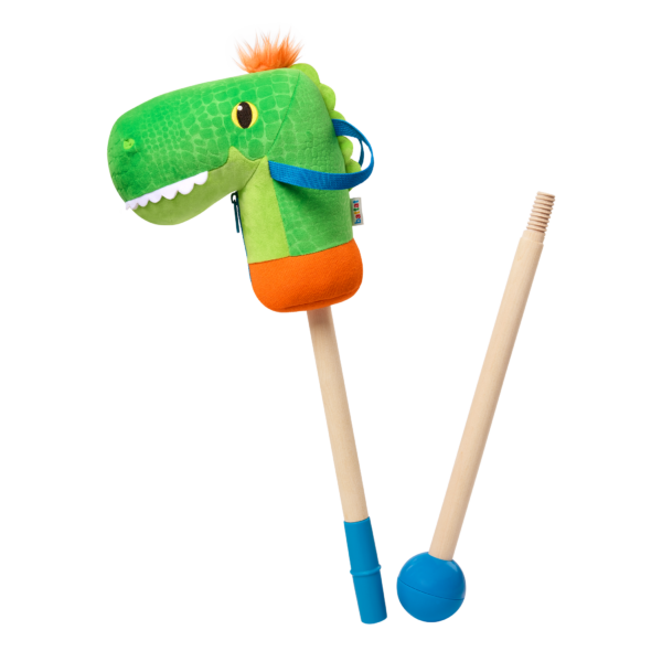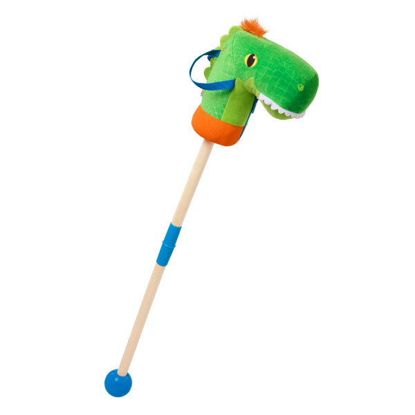 A classic playroom pal with a T. Rex twist! Let your little explorer stomp into action with Dino Pal™. This adorable T-Rex hobby horse brings prehistoric adventures to life with realistic roaring and stomping sounds! Crafted with soft, colorful plush and a sturdy hardwood riding pole, this dino buddy is perfect for active play and feeling fun textures! Not only does Dino Pal help improve gross motor skills, but it also sparks role-playing and soaring imaginations! Press the button, hear the roar, stomp around, and let the fun begin! This dinosaur hobby horse is recommended for kids 2 years and up and, like all Battat products, it’s made of worry-free and durable materials and meets or exceeds EU, U. S. and Canadian safety standards. Batteries included.